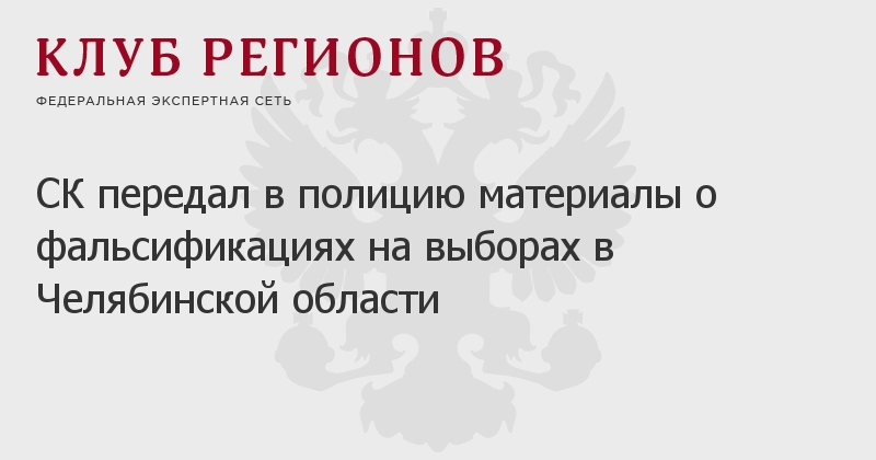 СК передал в полицию материалы о фальсификациях на выборах в Челябинской области