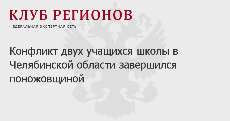 Уголовное дело возбуждено по факту ранения ножом школьником своего сверстника в Челябинской области. Зачинщик конфликта задержан. Пострадавшему оказана медицинская помощь. Уголовное дело возбуждено по статье «Умышленное причинение вреда здоровью». Губернатор Борис Дубровский поручил разобраться в случившемся и оценить эффективность мер по недопущению подобных инцидентов.