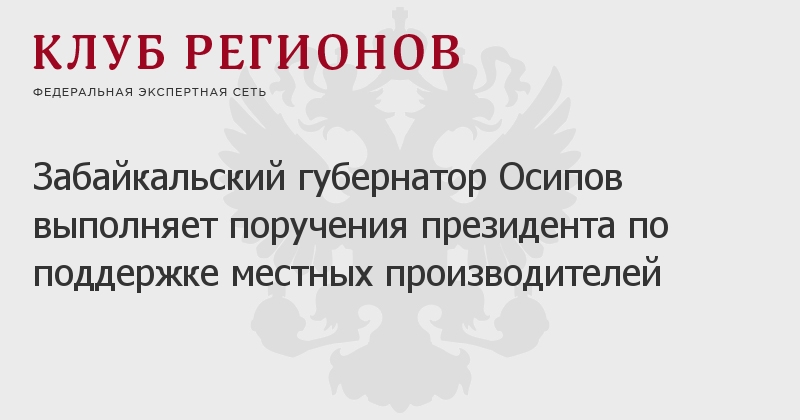 Забайкальский губернатор Осипов выполняет поручения президента по поддержке местных производителей