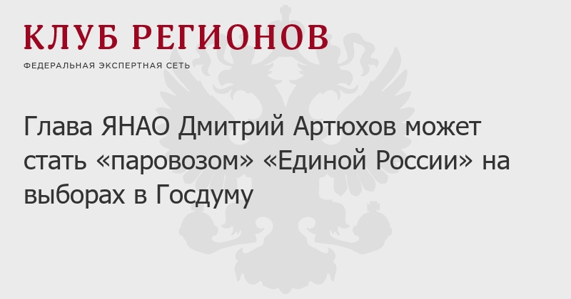 Возглавить объедигненный список регионов на выборах в госдуму может губернатор Ямала Дмитрий Артюхов. Он может стать «паровозом» «Единой России» в первой тройке региональной группы, которая объединяет тюменскую «матрешку» и Курган. При этом ранее Артюхов не имеет электорального опыта, поскольку не участвовал в избирательных кампаниях: выборы в ЯНАО непрямые – глава региона здесь избирается депутатами заксобрания.