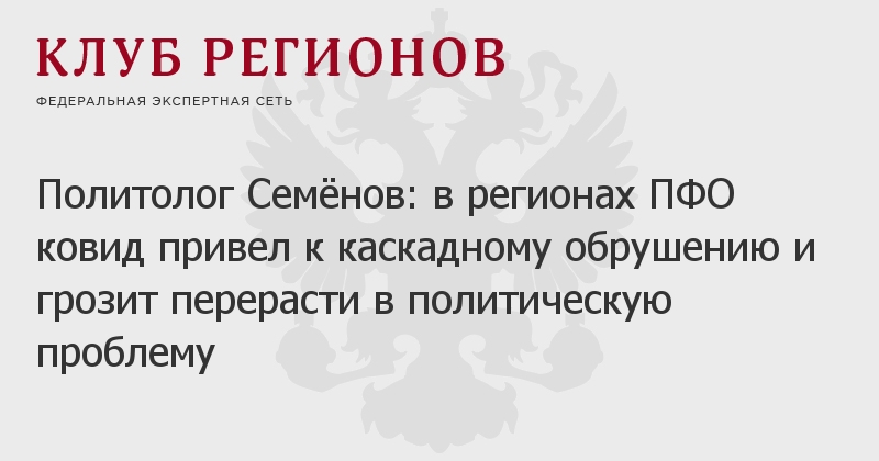 Политолог Семёнов: в регионах ПФО ковид привел к каскадному обрушению и грозит перерасти в политическую проблему