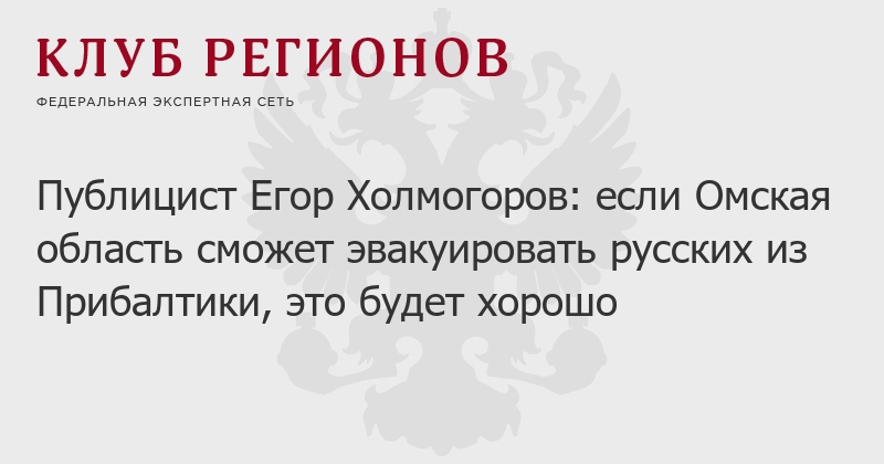 Публицист Егор Холмогоров: если Омская область сможет эвакуировать русских из Прибалтики, это будет хорошо