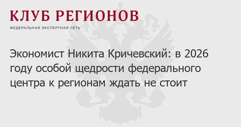 Экономист Никита Кричевский: в 2026 году особой щедрости федерального центра к регионам ждать не стоит