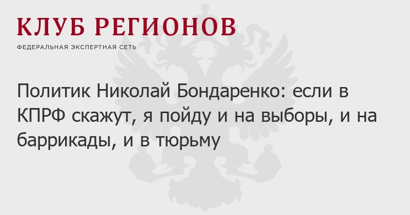 Политик Николай Бондаренко: если в КПРФ скажут, я пойду и на выборы, и на баррикады, и в тюрьму
