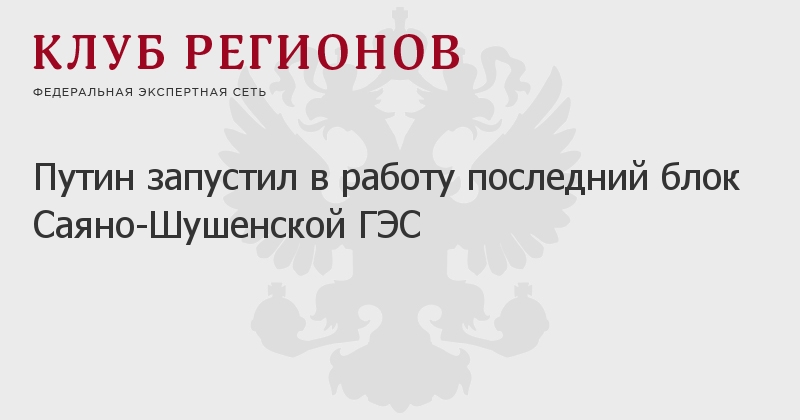 Церемония запуска последнего по счету завершающего блока Саяно-Шушенской ГЭС стала итогом пяти лет ремонтно-восстановительных работ и ознаменовала вывод станции на проектную мощность. О готовности гидроагрегата президенту РФ доложили руководитель компании «Роснефть» Игорь Сечин, возглавляющий комиссию по ликвидации последствий аварии, и глава «РусГидро» Евгений Дод.