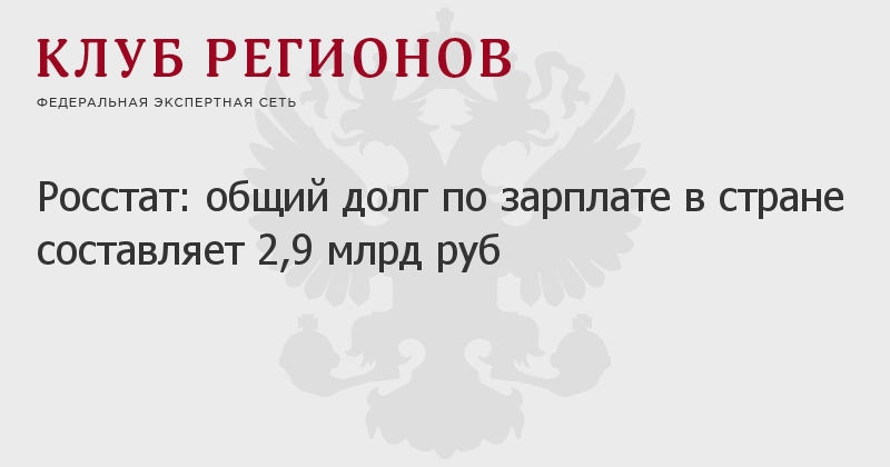 Росстат: общий долг по зарплате в стране составляет 2,9 млрд руб