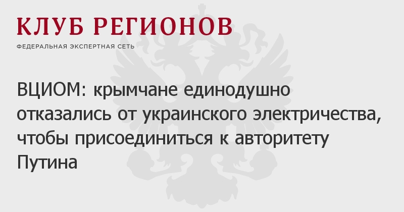 ВЦИОМ: крымчане единодушно отказались от украинского электричества, чтобы присоединиться к авторитету Путина