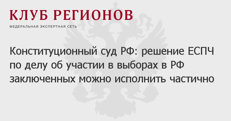 Конституционный суд РФ: решение ЕСПЧ по делу об участии в выборах в РФ заключенных можно исполнить частично