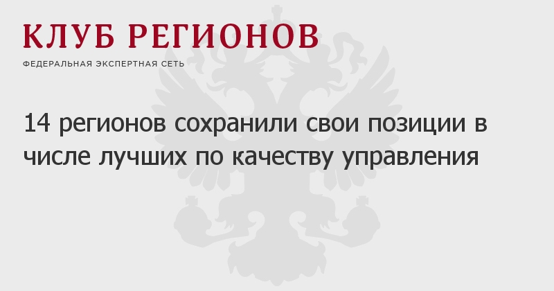 14 регионов сохранили свои позиции в числе лучших по качеству управления