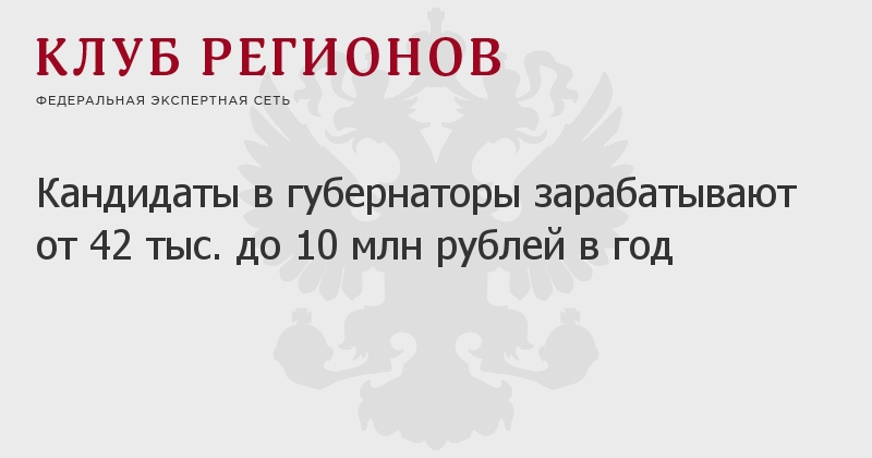 Кандидаты в губернаторы зарабатывают от 42 тыс. до 10 млн рублей в год