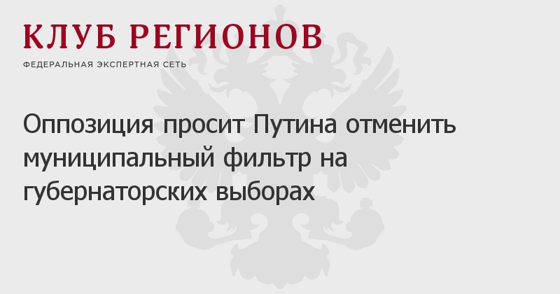 Оппозиция просит Путина отменить муниципальный фильтр на губернаторских выборах