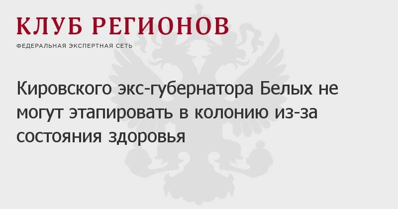 Кировского экс-губернатора Белых не могут этапировать в колонию из-за состояния здоровья