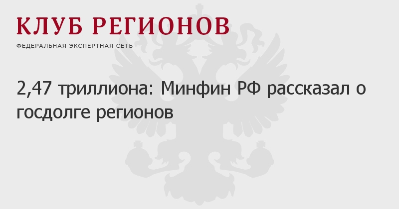 2,47 триллиона: Минфин РФ рассказал о госдолге регионов