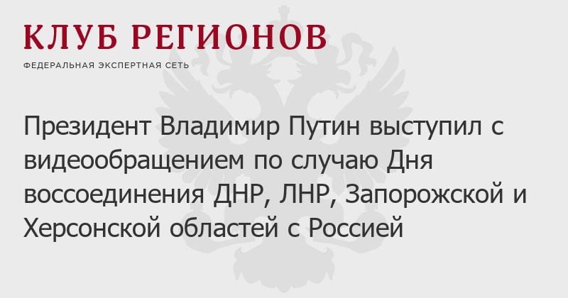 Президент Владимир Путин выступил с видеообращением по случаю Дня воссоединения ДНР, ЛНР, Запорожской и Херсонской областей с Россией