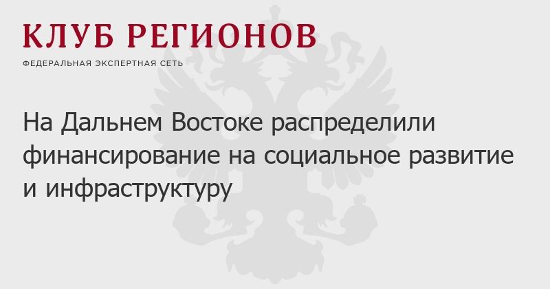 На Дальнем Востоке распределили финансирование на социальное развитие и инфраструктуру.
