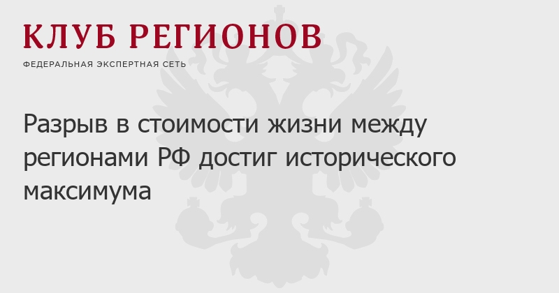 Разрыв в стоимости жизни между регионами РФ достиг исторического максимума