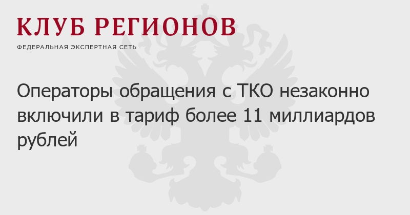 Операторы обращения с ТКО незаконно включили в тариф более 11 миллиардов рублей