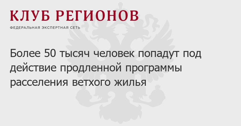 Более 50 тысяч человек попадут под действие продленной программы расселения ветхого жилья