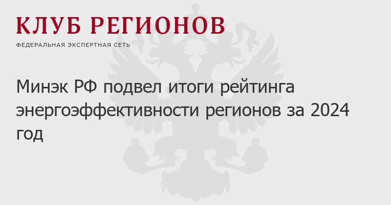 Минэк РФ подвел итоги рейтинга энергоэффективности регионов за 2024 год