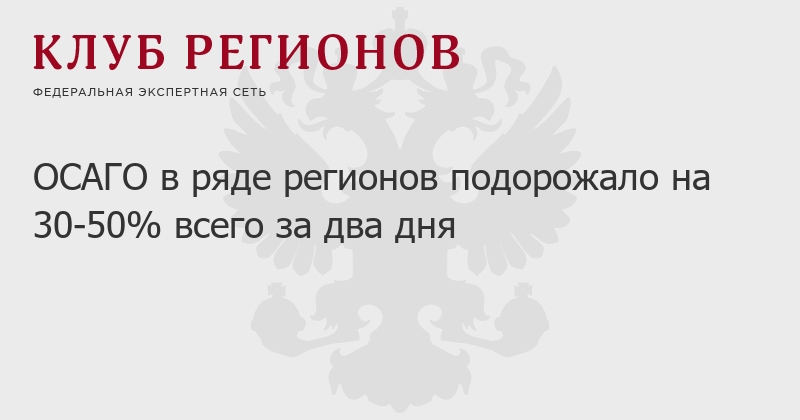 ОСАГО в ряде регионов подорожало на 30-50% всего за два дня