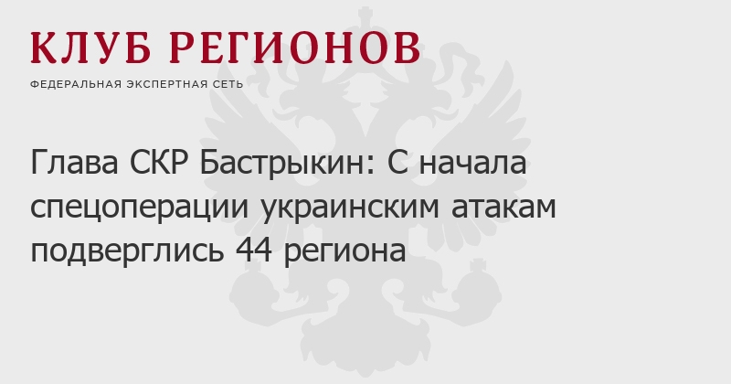 Глава СКР Бастрыкин: С начала спецоперации украинским атакам подверглись 44 региона