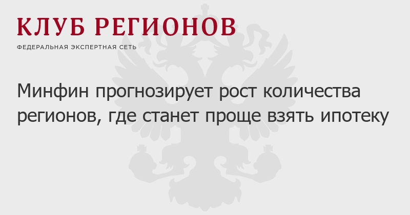 Минфин прогнозирует рост количества регионов, где станет проще взять ипотеку