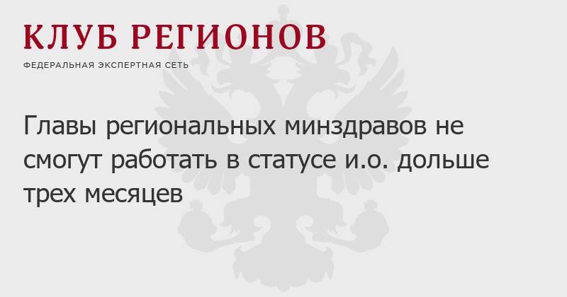 Главы региональных минздравов не смогут работать в статусе и.о. дольше трех месяцев