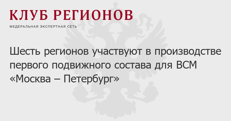 Шесть регионов участвуют в производстве первого подвижного состава для ВСМ «Москва – Петербург»
