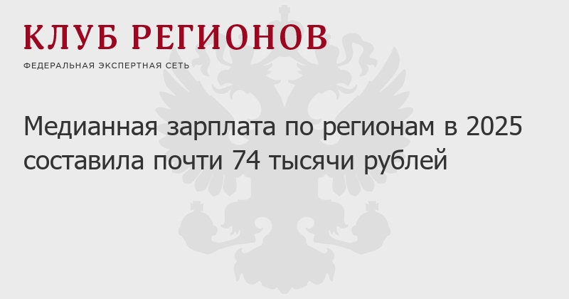 Медианная зарплата по регионам в 2025 составила почти 74 тысячи рублей