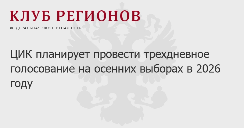 ЦИК планирует провести трехдневное голосование на осенних выборах в 2026 году