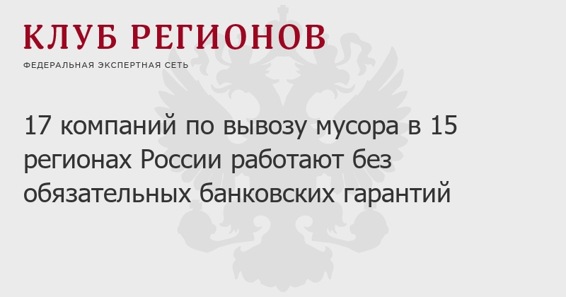 17 компаний по вывозу мусора в 15 регионах России работают без обязательных банковских гарантий