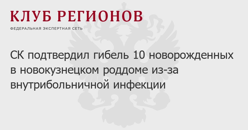 Следственный комитет и Роспотребнадзор установили, что причиной смерти 10 младенцев в роддоме Новокузнецкой горбольницы в январе 2026 года стала внутрибольничная инфекция из-за нарушений санэпидрежима.