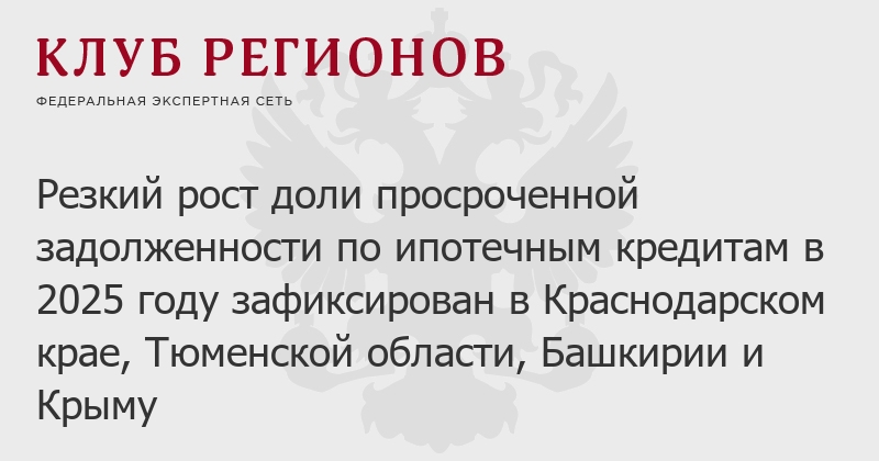 Резкий рост доли просроченной задолженности по ипотечным кредитам в 2025 году зафиксирован в Краснодарском крае, Тюменской области, Башкирии и Крыму