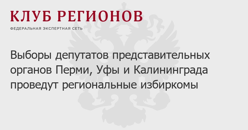 Выборы депутатов представительных органов Перми, Уфы и Калининграда проведут региональные избиркомы