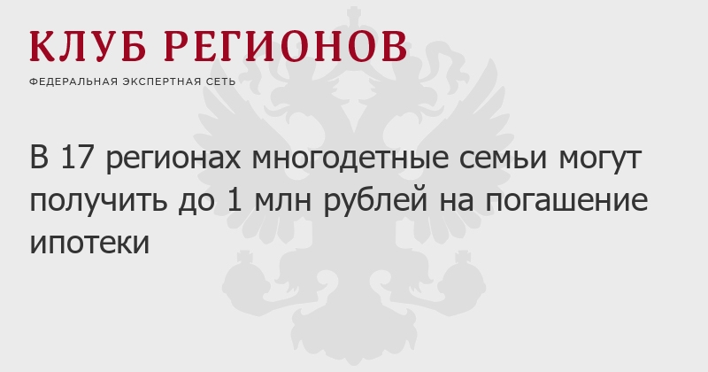 В 17 регионах многодетные семьи могут получить до 1 млн рублей на погашение ипотеки