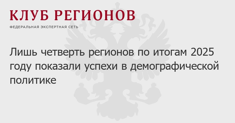 Лишь четверть регионов по итогам 2025 году показали успехи в демографической политике
