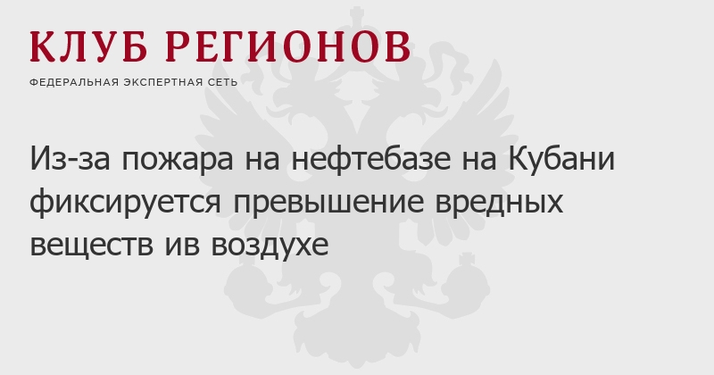 Из-за пожара на нефтебазе на Кубани фиксируется превышение вредных веществ ив воздухе