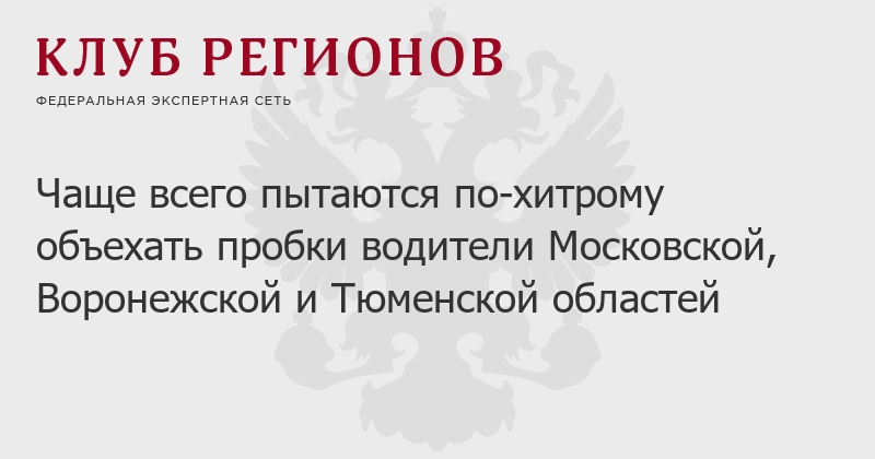 Чаще всего пытаются по-хитрому объехать пробки водители Московской, Воронежской и Тюменской областей