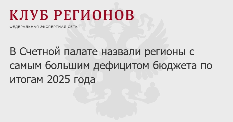 В Счетной палате назвали регионы с самым большим дефицитом бюджета по итогам 2025 года