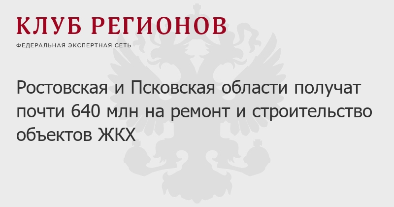 Ростовская и Псковская области получат почти 640 млн на ремонт и строительство объектов ЖКХ