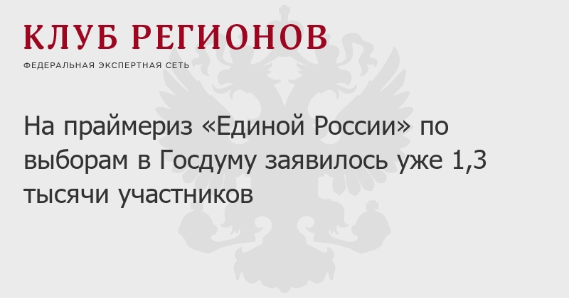 На праймериз «Единой России» по выборам в Госдуму заявилось уже 1,3 тысячи участников