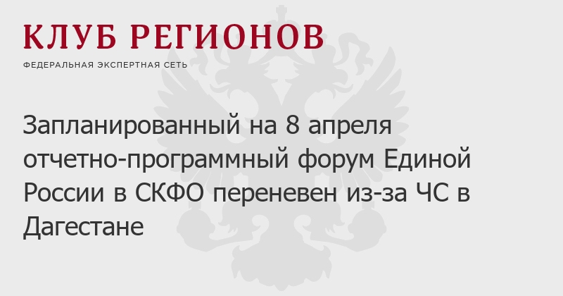 Запланированный на 8 апреля отчетно-программный форум Единой России в СКФО переневен из-за ЧС в Дагестане