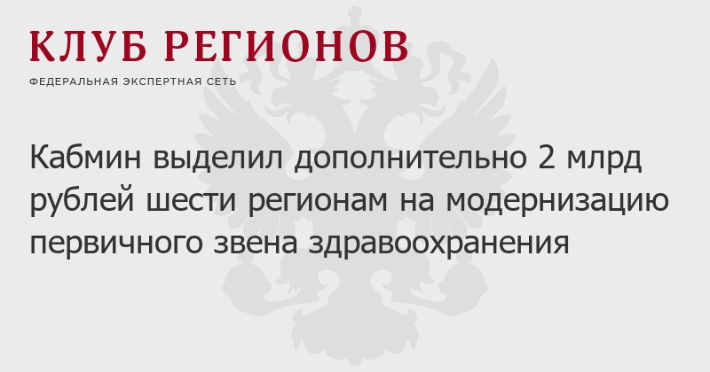 Кабмин выделил дополнительно 2 млрд рублей шести регионам на модернизацию первичного звена здравоохранения