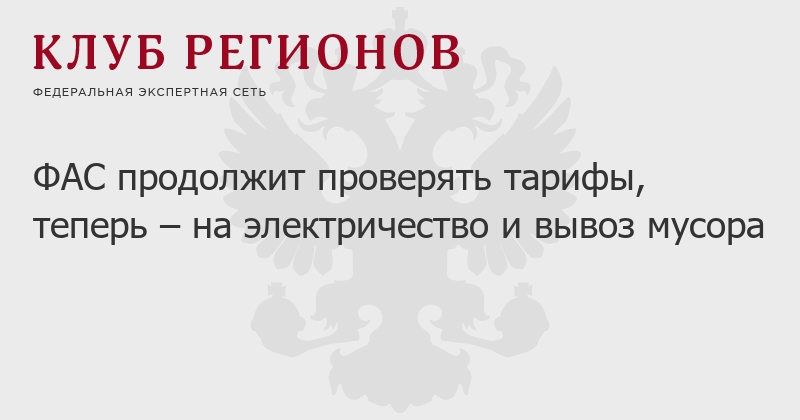 ФАС начинает масштабную проверку тарифов на электроэнергию и вывоз мусора. В ходе совместной проверки с прокуратурой тарифов на воду, водоотведение и тепло, выяснилось, что: