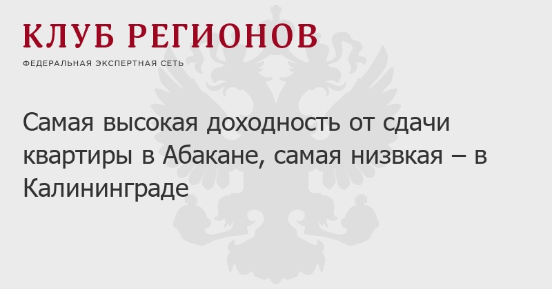 Самая высокая доходность от сдачи квартиры в Абакане, самая низвкая – в Калининграде