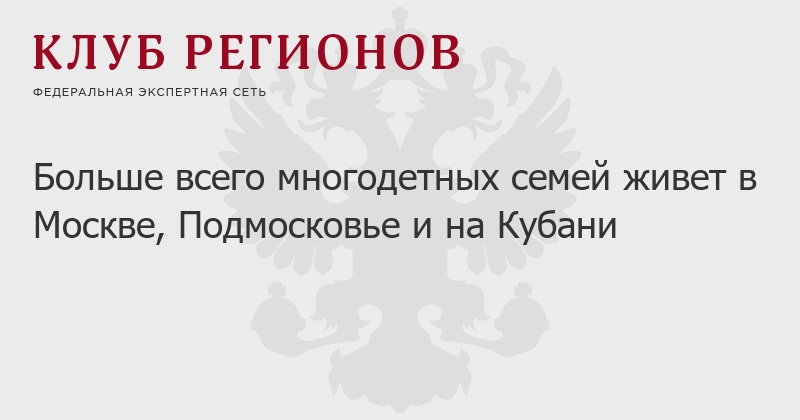 Больше всего многодетных семей живет в Москве, Подмосковье и на Кубани