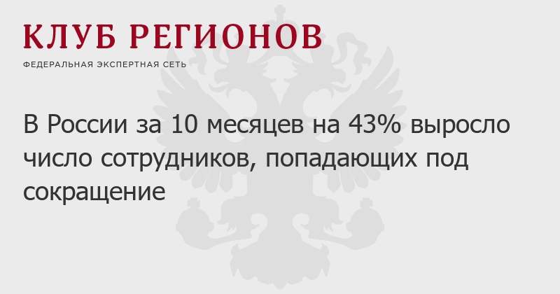 В России за 10 месяцев на 43% выросло число сотрудников, попадающих под сокращение