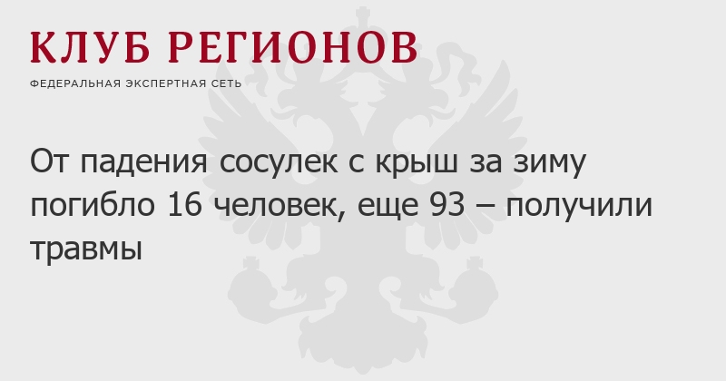 За минувшую зиму (с ноября 2025 по март 2026 года) от падения наледи и сосулек с крыш в России погибло 16 человек, еще 93 человека получили травмы различной степени тяжести. Статистику на основе открытых данных приводит «Академия электрообогрева».