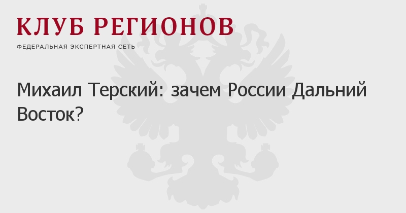 Михаил Терский: зачем России Дальний Восток?